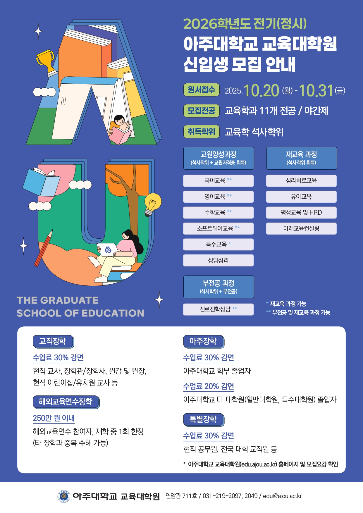 [아주대학교 교육대학원] 2026학년도 전기(정시) 석사과정 신입생 모집 안내