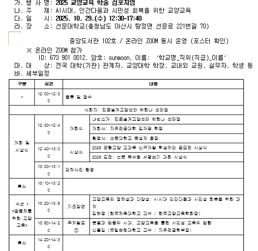 [선문대학교] 2025 교양교육 학술 심포지엄 개최 안내
