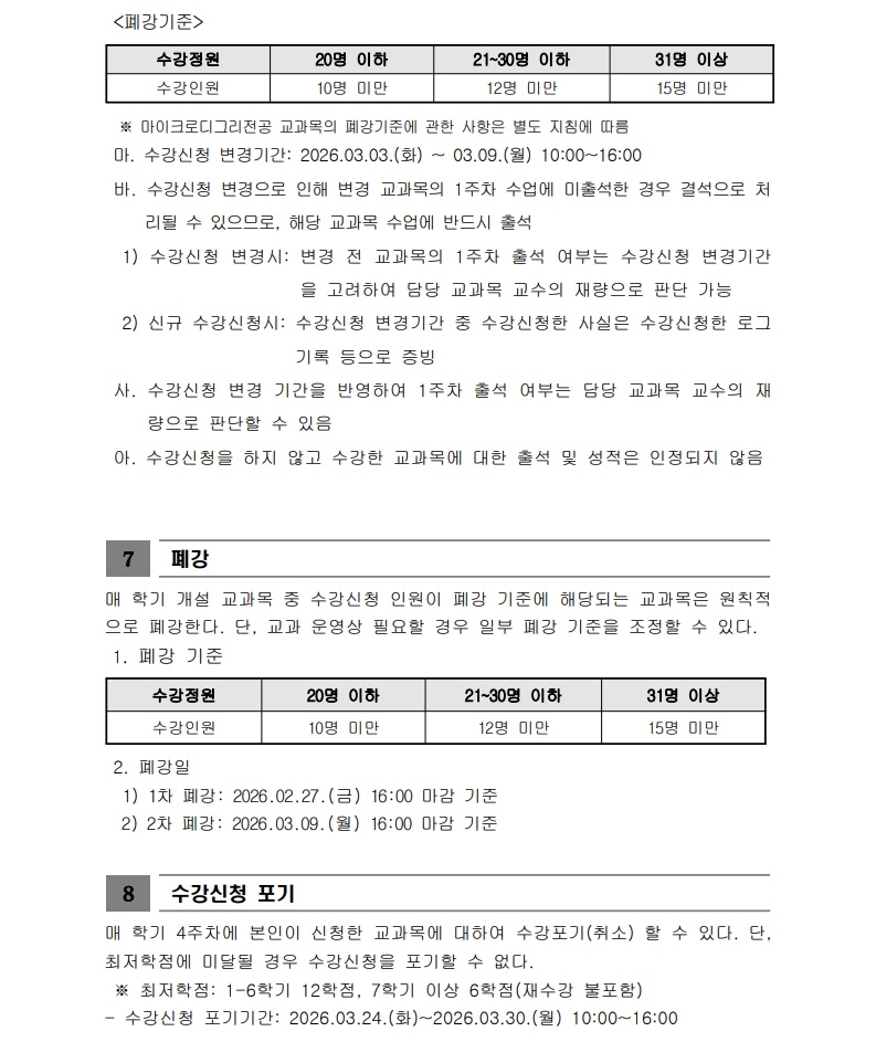 [학사팀/수업] 2026학년도 1학기 수강신청 운영 계획 안내